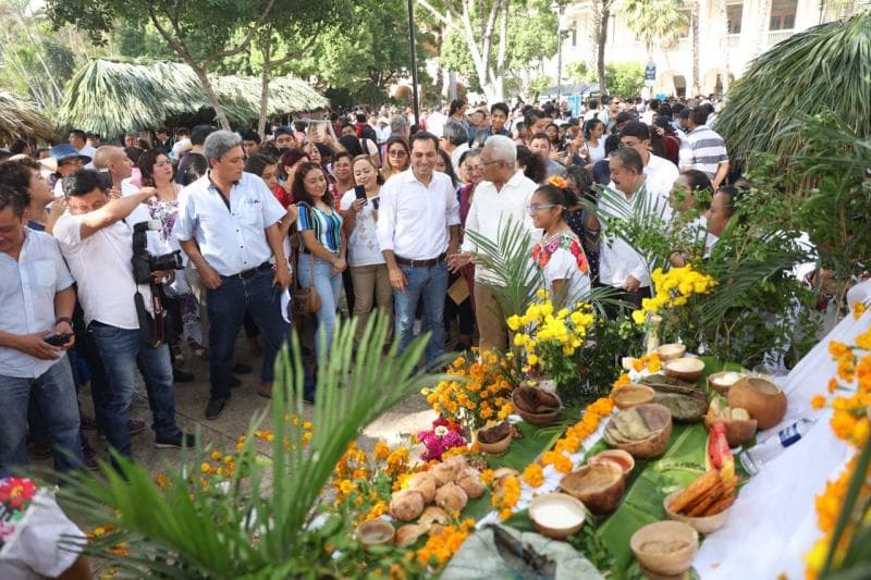 El aroma a pib, pan dulce y chocolate caliente, así como las flores, velas, retratos y trajes regionales, enmarcaron la Gran Muestra de Altares "Hanal Pixán 2019", la cual inauguró el Gobernador Mauricio Vila Dosal y reunió a un total de 61 ofrendas representantes de dependencias de Gobierno, municipios, asociaciones civiles e instituciones educativas.
