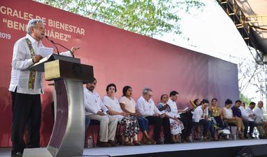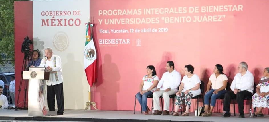 Ticul, Yucatán, 12 de abril de 2019.- En la región de la Perla del Sur, casi 500 jóvenes se han matriculado en la carrera de Medicina Integral del Sistema de Universidades Públicas. Además, en una primera etapa, 10 mil productores y ejidatarios sembrarán 25 mil hectáreas de árboles frutales y maderables. A ello se añade que el hospital inconcluso recibirá presupuesto para rehabilitación y dar servicio de calidad en la zona.