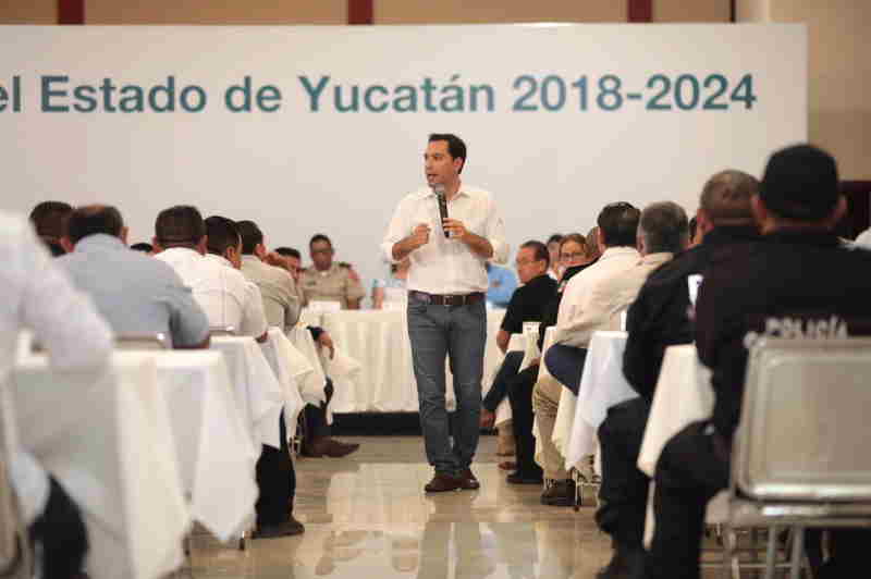 Mérida, Yucatán, 6 de octubre de 2018.- Luego de dormir la noche del viernes en Ticul, el gobernador acudió acompañado de casi todos los funcionarios de su gabinete estratégico y de los encargados representantes de la seguridad de los distintos órdenes federales, estatales y municipales a un encuentro con 33 alcaldes del sur del estado, reunión que fue calificada como inédita, muy positivo y altamente productiva por todos los asistentes, incluso de partidos políticos diferentes.
