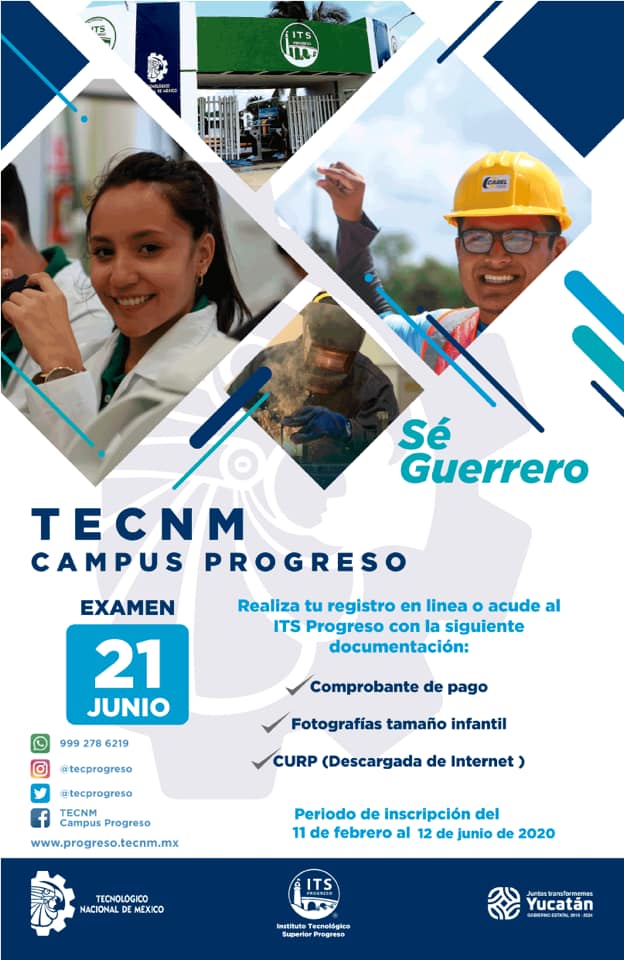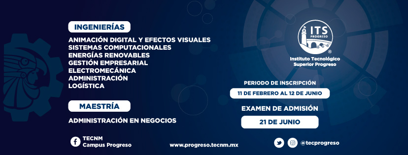 Lo anterior, como parte de la promoción institucional y debido a la contingencia para más información se puede consultar a la convocatoria en la página: www.progreso.tecnm.mx/aspirantes/.