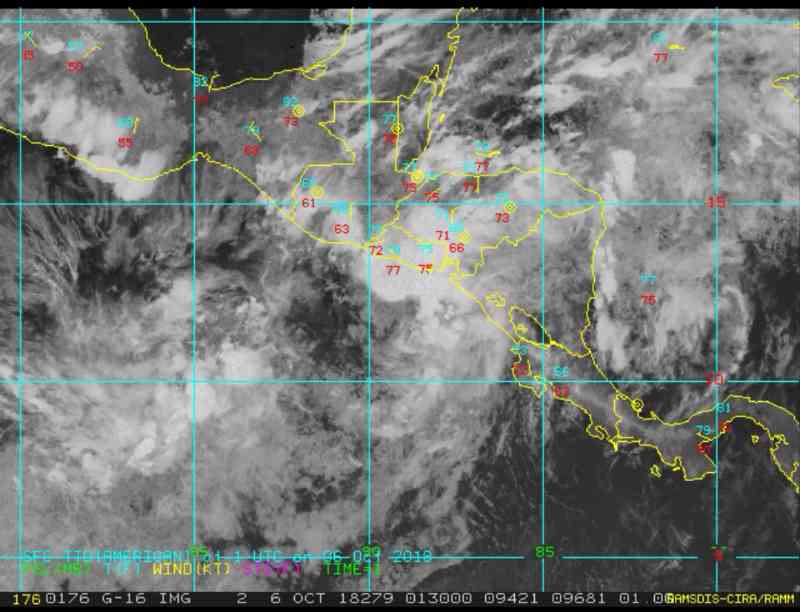 Este sistema se mueve lento con dirección noroeste y registra vientos máximos sostenidos de 30 km/h con rachas de hasta los 40 km/h.
