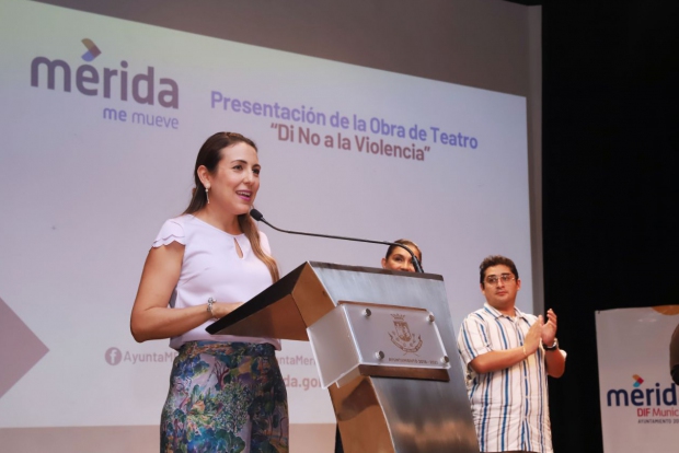 Con un llamado a evitar la violencia física y verbal en las escuelas y hogares, el Ayuntamiento de Mérida fortalece las acciones de prevención del bullying por medio de actividades didácticas creadas especialmente para mostrar el tema de manera clara a niñas y niños del municipio.Durante la primera presentación de la obra infantil "Di No a la Violencia", que se llevó a cabo en el auditorio "Dr. Silvio Zavala Vallado" del Centro Cultural "Olimpo", la presidenta del DIF Mérida, Diana Castillo Laviada, aseveró que a petición del alcalde Renán Barrera Concha, se realizan programas y acciones que buscan combatir conductas nocivas desde temprana edad.