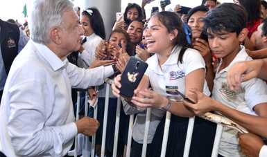 “Los que estudian nivel medio superior, como ustedes: prepa, Colegio de Bachilleres, escuelas técnicas, todos, como cuatro millones de estudiantes en todo el país, todos, su beca: mil 600 pesos cada dos meses.