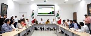 MÉRIDA YUCATÁN A 26 DE DICIEMBRE DE 2018 .- Diputados de cinco fuerzas políticas se manifestaron en contra del Impuesto Ambiental sobre la extracción de materiales de suelo y subsuelo, que afectaría al sector vivienda, durante la reunión que sostuvieron con la Secretaria de Administración y Finanzas, Olga Rosas Moya, en el seno de la comisión de Presupuesto, Patrimonio Estatal y Municipal.